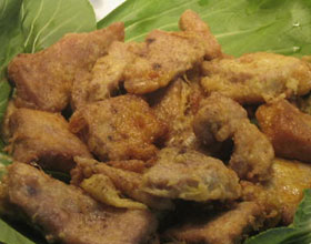 香酥肉:'1.将猪肉去皮,用凉水洗净,放入开水内烫透,再用凉水投凉,改成大斜片,摆在盆内加大料、花椒、香叶、一半葱姜、桂皮、酱油、汤上屉蒸烂。2.其余葱姜...