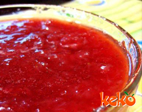 草莓果酱:'1.草莓选择中等形状,大小一致的,去蒂,用盐水洗净,再擦干水。2.果冻加入冷开水,搅匀备用。3.将柠檬挤汁,与草莓、白糖及果冻一起放入大碗中,中火...    详细介绍