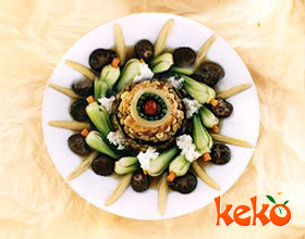 鼎湖上素:'1.水发香菇用清水洗净,大片的用斜刀片成两片,小的整用;2.鲜草菇在圆面上切成十字花刀;3.将水发口蘑、水发黄耳、水发榆蘑用清水洗净,均切成片;4...    详细介绍