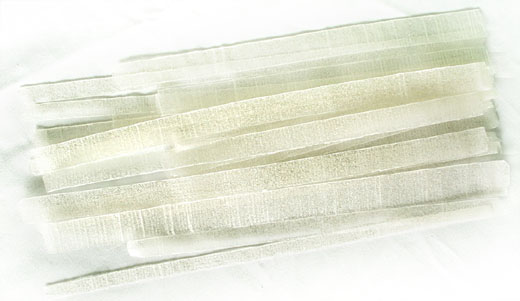 3.葱切细丝,放在黄瓜丝和粉皮上面,浇上酱油、醋、香油、味精,拌匀即成。