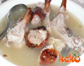 鸭架汤:'1.猪肉洗净,切成两块;2.藕洗净,去皮切成两段;3.冬菇用水浸泡,摘净;4.干笋、红枣、莲子洗净备用;5.汤锅内加清水4000克,置大火上,将鸭骨架、猪... 详细介绍