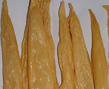 腐竹是大豆磨浆烧煮后,凝结干制而成的豆制品。腐竹是从锅中挑皮、捋直,卷成杆状,经过烘干而制成的。腐竹以颜色浅麦黄,有光泽,蜂窝均匀,折之易断,外形整齐的质佳。腐竹是豆制品的高档食品,该产品营养价值之高,被人们广称为“素中之荤”,备受广大消费者的喜爱。腐竹由黄豆制成,具有与黄豆相似的营养价值,如黄豆蛋白、膳食纤维及碳水化台物等,对人体非常有益。腐竹的保健功能同豆浆相差无几,几乎适合一切人食用。